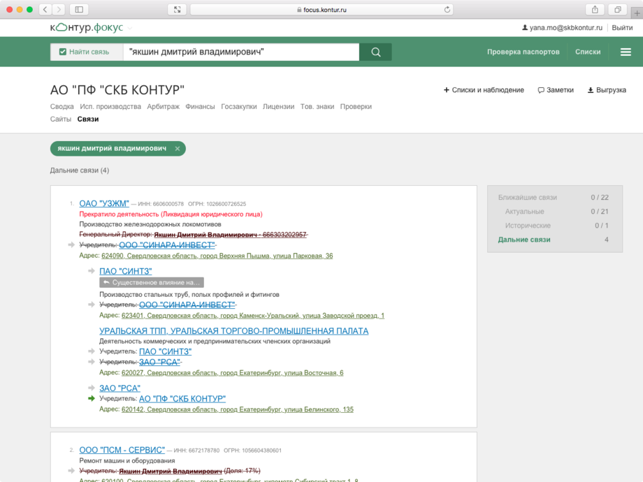 Компаниям, которые ведут внешнеэкономическую деятельность, работать с фигурантами санкций рискованно. Сотрудничество может обернуться потерей валютного контракта или привести к попаданию под вторичные санкции. Проверка на санкционные риски в Фокусе позволяет минимизировать эти риски.