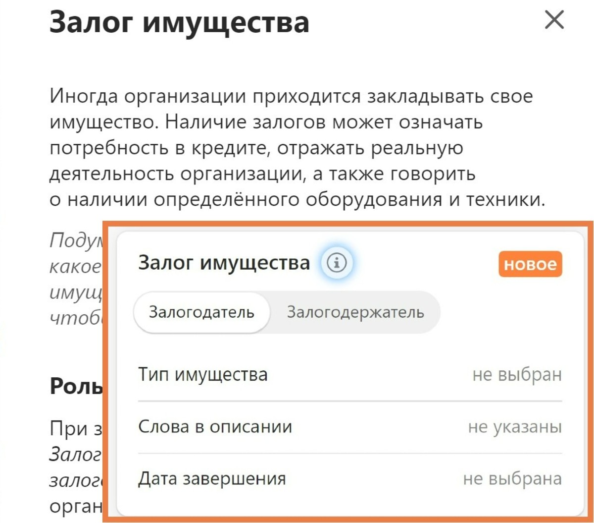 Справка по блоку «Залог имущества»